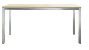 Kuadro table, steel frame with square tube legs mm.40×40,  powder coated, chromed or satinized. Laminated top with ABS edge thickness mm.20, in the following colours: ivory, bleached oak and wengé. Available also with frosted thoughned glass top thickness mm 12.  **Special Order Item